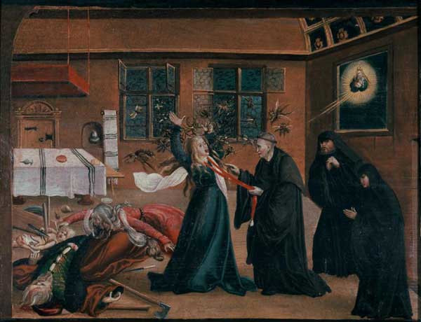 Unclean Spirit! Whoever you are, and all your companions who possess this servant of God. By the mysteries of the Incarnation, the Sufferings and Death, the Resurrection, and the Ascension of Our Lord Jesus Christ; by the sending of the Holy Spirit; and by the Coming of Our Lord into Last Judgment, I command you: Tell me, with some sign, your name, the day and the hour of your damnation. Obey me in everything, although I am an unworthy servant of God.
