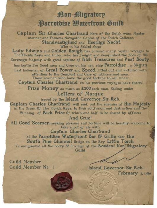 the South Pine Channel Bridge on the Key of Little Torch Ye are granted all Booty & Privilege of the Resident Non-Migratory Guild